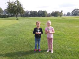 De wedstrijd op de Shortgolf/Par3 baan is gewonnen door Daan (staat niet op de foto), Annalisa werd tweede en Julian mocht de 3e prijs mee naar huis nemen.