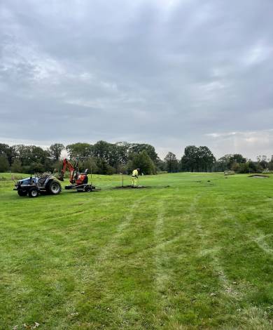 Voor het testen zoeken we wel een moment waarop dat goed uitkomt. Beregenen terwijl de baan op veel plekken door de recente regenval voldoende water heeft gehad, is niet handig.