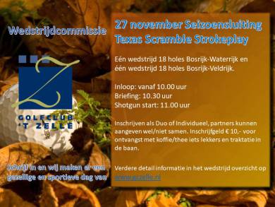 Op 27 november organiseert de Wedstrijdcommissie TWEE afsluitende seizoenswedstrijden.
