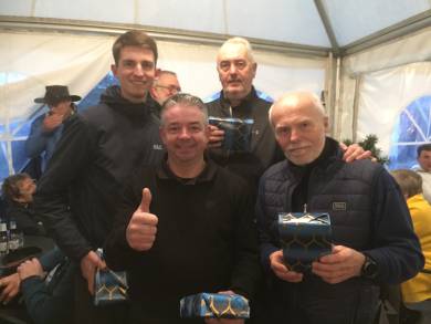 Het klein spatje regen had totaal geen invloed op de deelnemers en ondanks de krappe behuizing in de tent na afloop, was de sfeer optimaal en werd er veel gelachen.