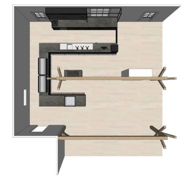 De eerste foto (boven) in dit nieuwsbericht laat de positie en de indeling van de bar zien. Deze komt tegen de muur naar het terras te staan, op een ideale plek voor de bediening vanwege de nieuwe buitendeur die recent in deze muur is geplaatst.