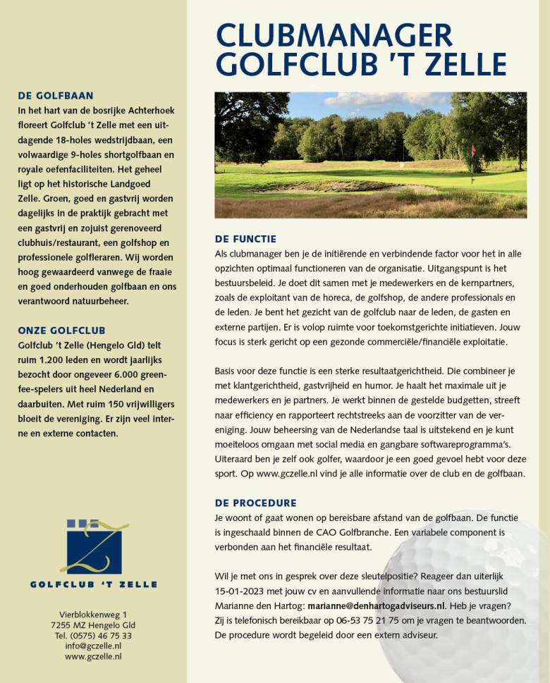 Onderstaand tref je de uitgebreide functieomschrijving aan voor de vacature "Clubmanager" (ook in PDF).