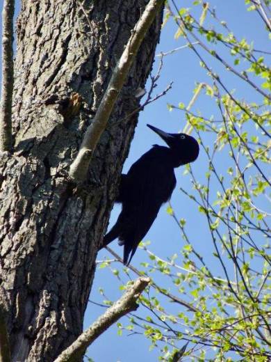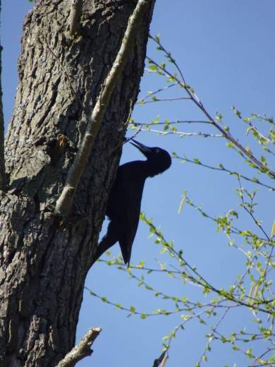 De zwarte specht is ook te herkennen aan zijn luide roep of aanhoudend geroffel. Het menu bestaat voornamelijk uit mieren en ze zijn een meester in het vinden van mierenkolonies.