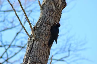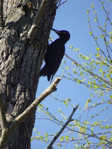 Halverwege hole 6 staat rechts in het het gekapte bosdeel een dode boom, waar een zwart spechten-paar beslag op heeft gelegd.
